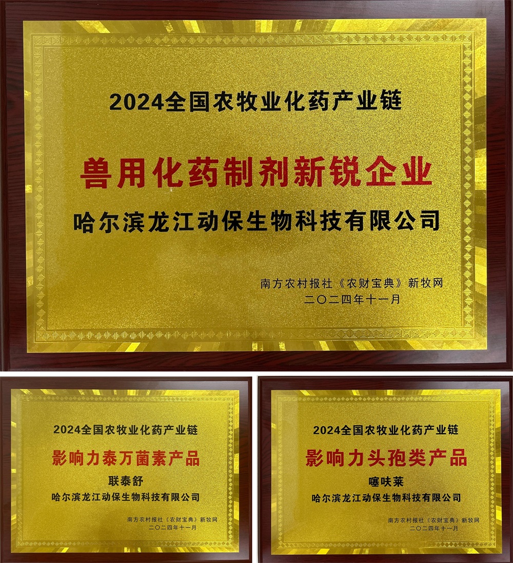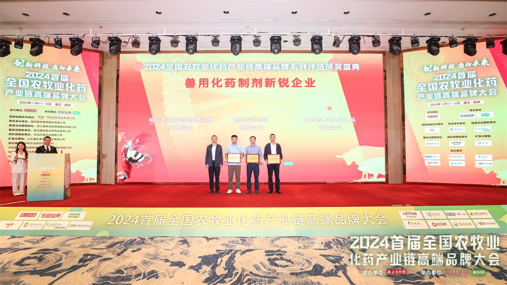 大會(huì)上,2024全國(guó)農(nóng)牧業(yè)化藥產(chǎn)業(yè)鏈高端品牌系列評(píng)選結(jié)果正式揭曉。哈三聯(lián)全資子公司龍江動(dòng)保獲得“2024年度獸用化藥制劑新銳企業(yè)”,龍江動(dòng)保獸藥酒石酸泰萬(wàn)菌素預(yù)混劑獲評(píng)“影響力泰萬(wàn)菌素產(chǎn)品”、注射用頭孢噻呋鈉獲評(píng)“影響力頭孢類(lèi)產(chǎn)品”。